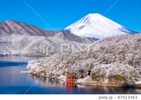 《神奈川県》富士山・雪景色の箱根芦ノ湖