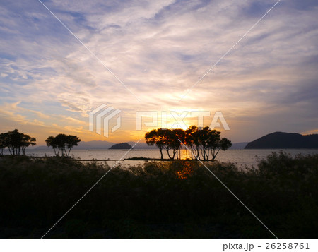 滋賀県長浜市 湖北野鳥センターからの琵琶湖の夕景