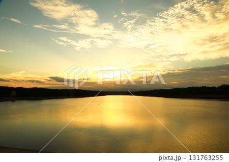 湖に沈む黄金の夕日, 静かな水面に映る美しい夕焼け