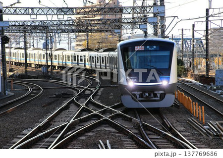 夕暮れの江ノ島電鉄の風景 鎌倉駅(江ノ電1500系)