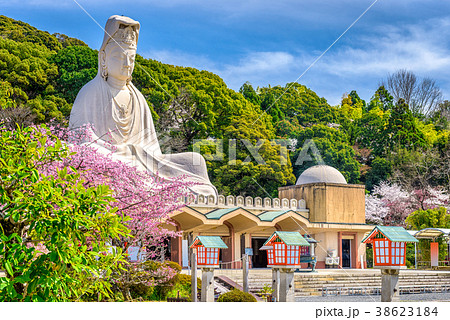 buddha statue by sakura cherry blossom at Nyoirinji Temple, Ogori, Fukuoka