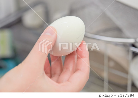 ゆで卵を剥く