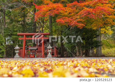 高野山 湯屋谷弁財天社 モミジとイチョウのコントラスト