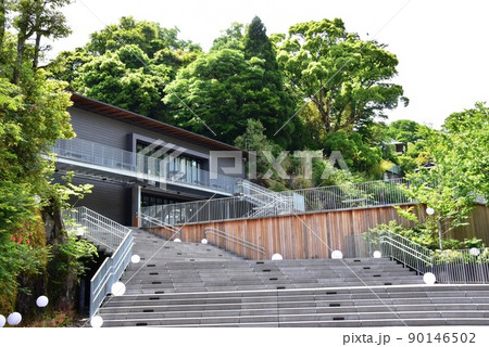 湯河原町 万葉公園万葉公園湯河原惣湯玄関テラスエントランスと新緑