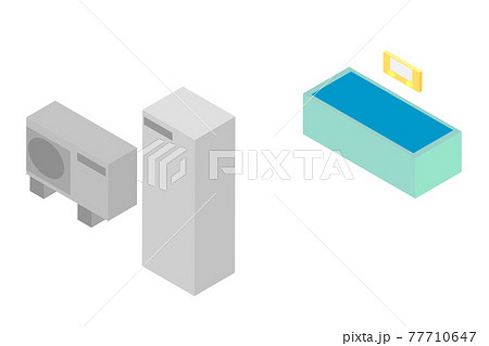 アイソメトリックなクリーム色の給湯機のイメージ素材