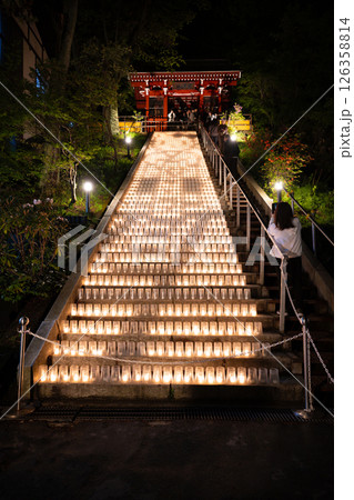 伊香保温泉 夜の石段街 浴衣姿の宿泊客