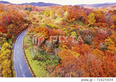 紅葉時期の国道398号線湯浜峠の風景 宮城県栗原市