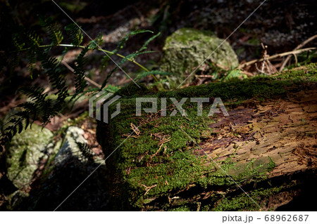 山中の苔の生えた倒木