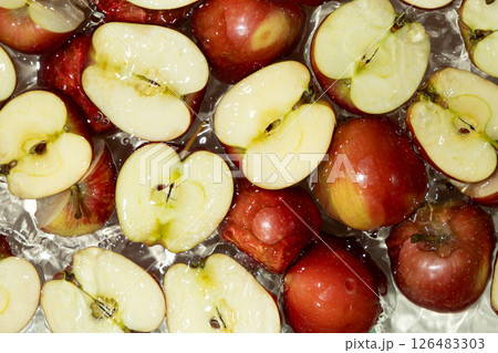Juicy Red Apples Floating in Water With Splash.