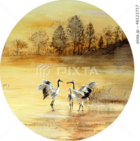 寒い朝、タンチョウ鶴の印象