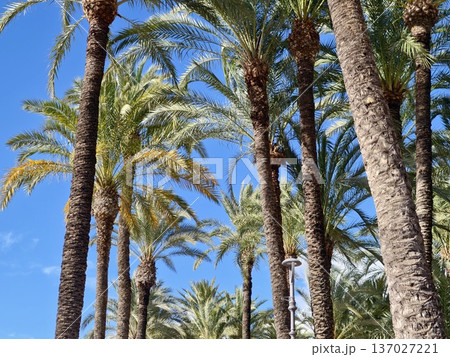 Bright sunlight illuminates swaying palm fronds, Exultant atmosphere with greenery and open blue sky
