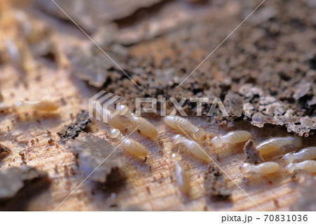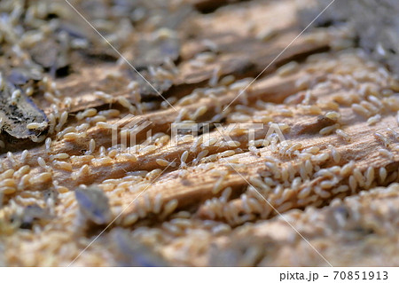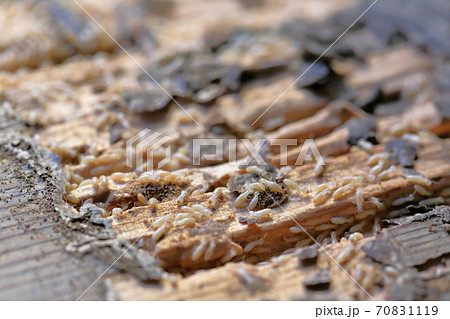 木材を食い散らかすシロアリ(ヤマトシロアリ)
