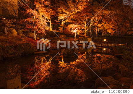 ライトアップされた竈門神社の紅葉