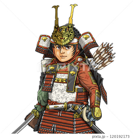 大鎧を着て正面を向く鎌倉武士の源義経