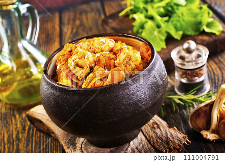 Delicious baked chicken meat with salt, spices and herbs