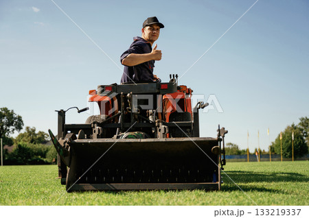 Construction site with building equipment on prepared ground in American suburbs. Aerial view of large development area of residential housing. Real estate market in the USA