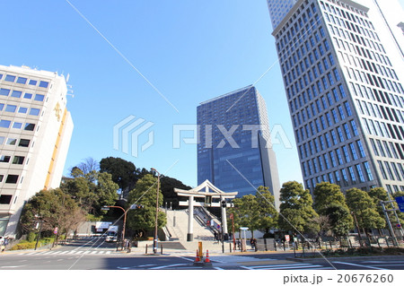 日本の東京都市景観 永田町の山王パークタワー(溜池山王駅出入口)側からコマツビル方面を望む