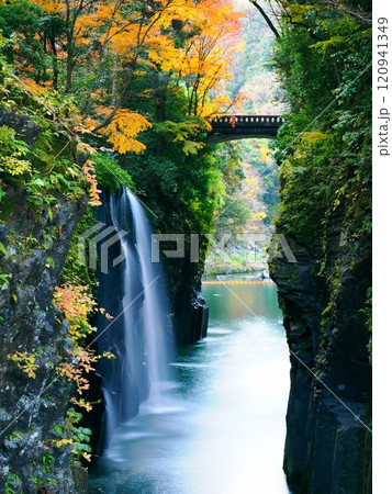 宮崎_うのこの滝と紅葉の風景