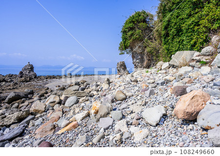 海を背景に溶岩塔 「両子岩(ふたごいわ)」観光スポット 長崎県南島原市
