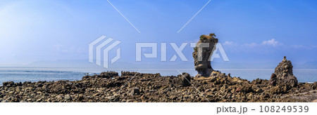 海を背景に溶岩塔・岩石風景 「両子岩(ふたごいわ)」観光スポット 長崎県南島原市
