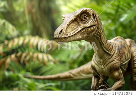 博物館の恐竜コーナーに展示されたヴェロキラプトルの化石