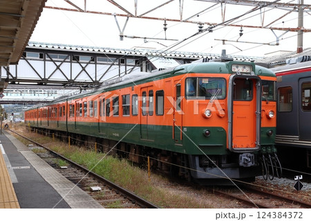 小諸駅に停車中のしなの鉄道115系電車(長野県小諸市)