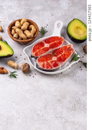 Perfect Salmon fillet steak, raw fish on a plate. black background. top view