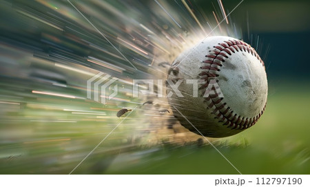 Dynamic image capturing a baseball with motion blur, symbolizing speed and action