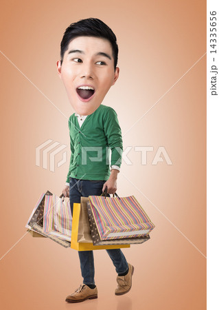 Funny shopping Asian guy