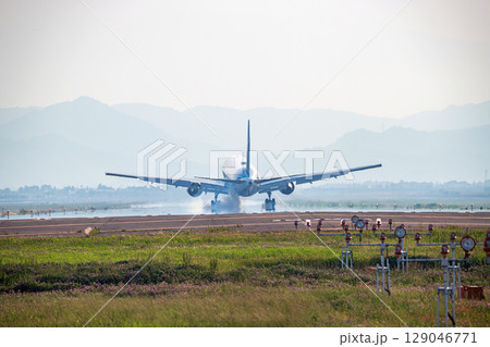 着陸するジェット旅客機