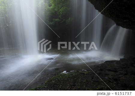 滝水のカーテン 月待の滝は裏見の滝日本一 滝の裏から撮影しました