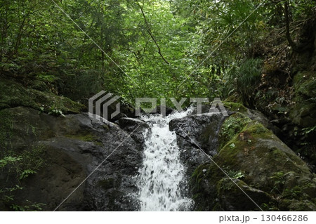 屋久島洋上アルプスの夏景色、山中に豪快に轟く大川の滝