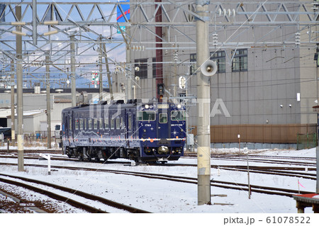 北海道函館市函館駅で漁り火鉄道の列車の冬の風景を撮影