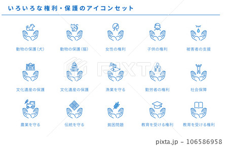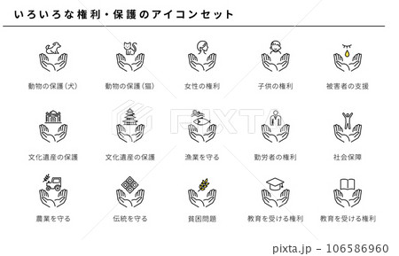 いろいろな権利・保護のシンプルアイコンセット、ベクター