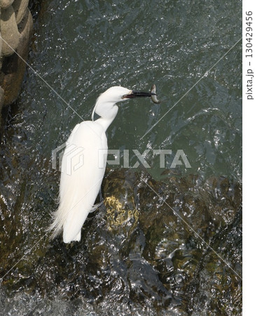 鮎を捕らえたコサギ