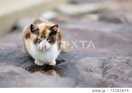 漁港で魚を食べる猫
