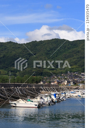 漁港の風景 夏空と漁港