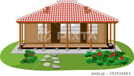 沖縄県の古民家 赤瓦屋根のイメージイラスト
