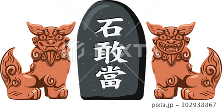 沖縄県の魔除けシーサーと石敢當のイメージイラスト