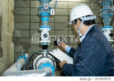 ビルの給水設備の点検をする作業員の横顔 ビルメンテナンススタッフ イメージ