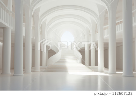 Abstract white studio background for product presentation. Empty room with shadows of arch window. 3d room with copy space. AI Generative.