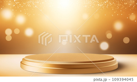 3d illustration of golden background with octagonal stage pedestal illuminated by light