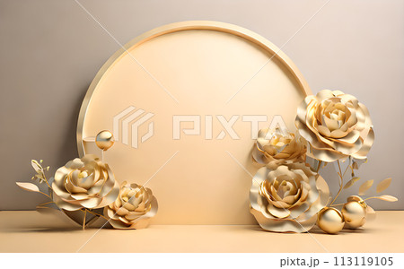 beautiful flowers leaf in studio 3D rendering podium for product display wallpaper
