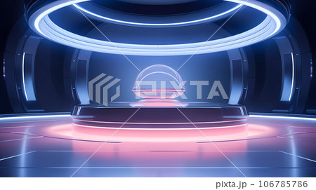 illustration of 3d rendering abstract podium neon circle tunneling lights for ecommerce signs retail