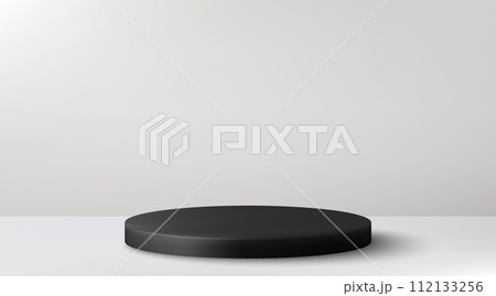 Abstract 3D room white, black realistic round, cylindrical podium. Minimal scene. Stage showcase, product layout.