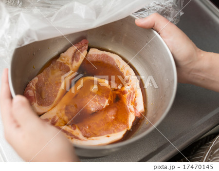 豚肉を漬け込む