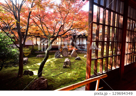 京都東山の秋 建仁寺 紅葉に包まれた潮音庭