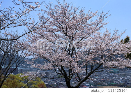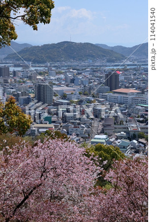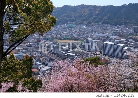 筆山から桜と学校を眺める 2022春 (高知県 高知市)