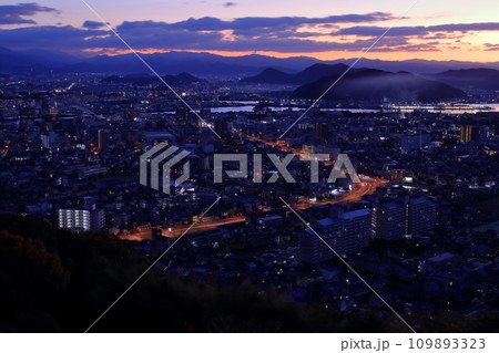 皿ヶ峰から弘化台の市場を眺める 夜明け (高知県 高知市)