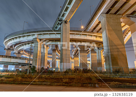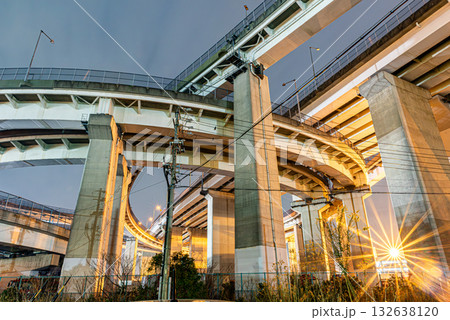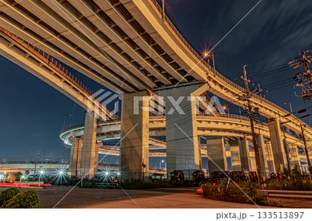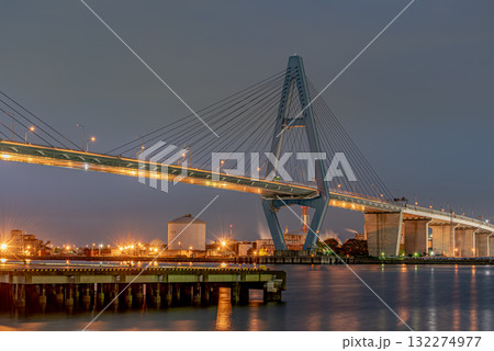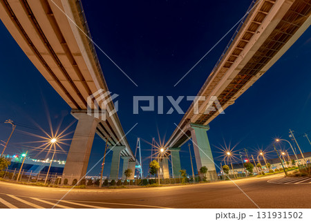 名港潮見埠頭から見上げる伊勢湾岸道夜景